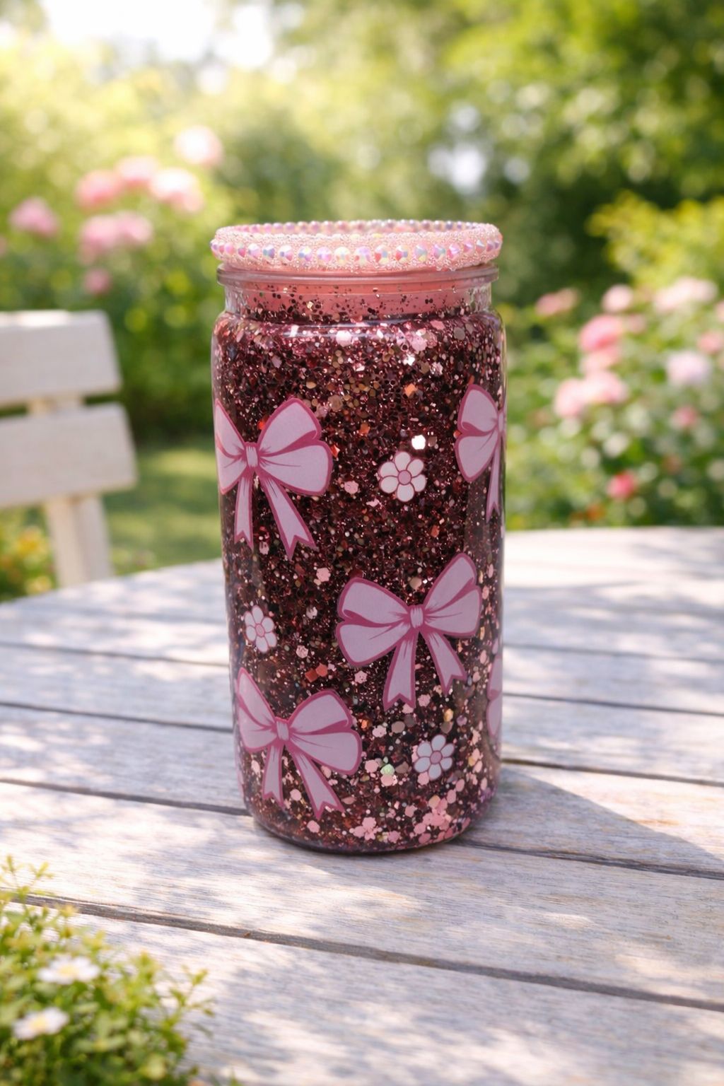 Add a touch of soft glam to your sips with this 16oz “Pink Bows” Snow Globe Cup. Featuring a sweet pink bow design paired with a dreamy snow globe effect, it’s the perfect mix of feminine charm and everyday practicality.
